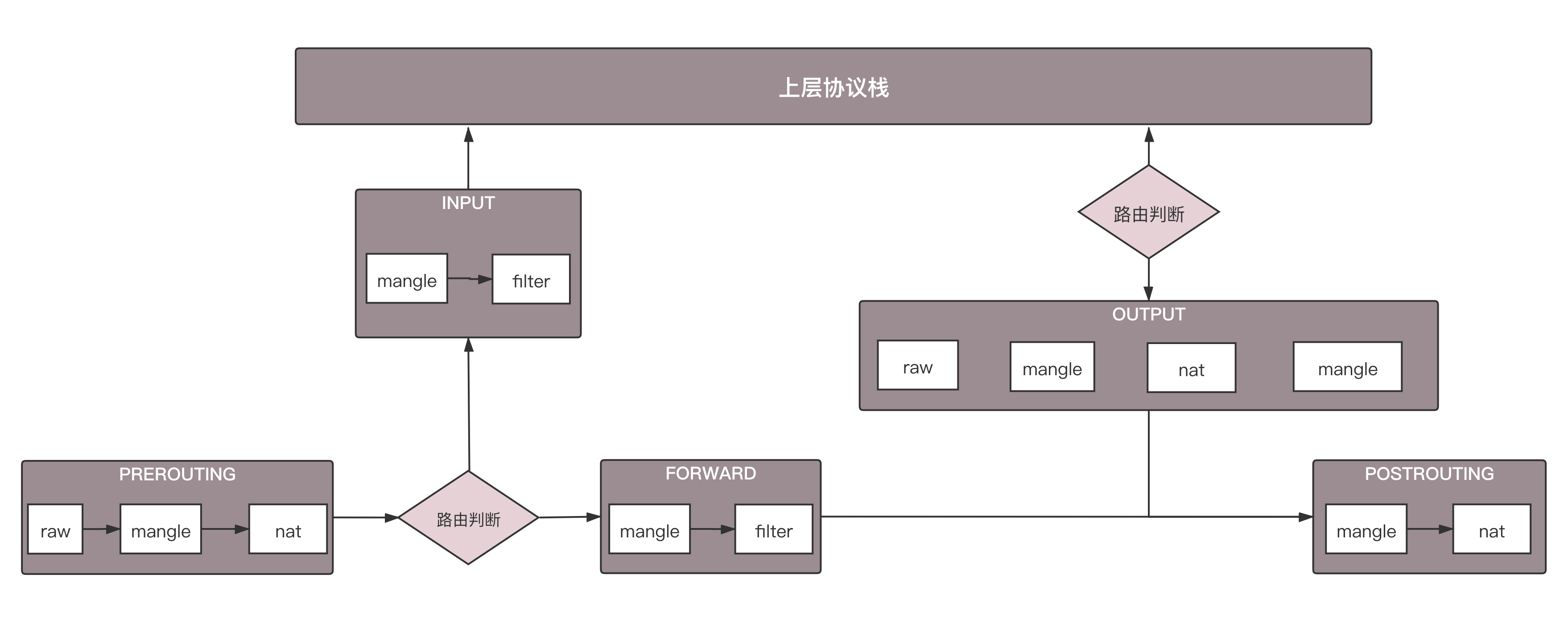 虚拟机中的安全组,是用iptables实现的。Calico中也是用iptables实现的。这个图里的内容是iptables在内核处理网络包的过程中可以嵌入的处理点。Calico也是在这些点上设置相应的规则。