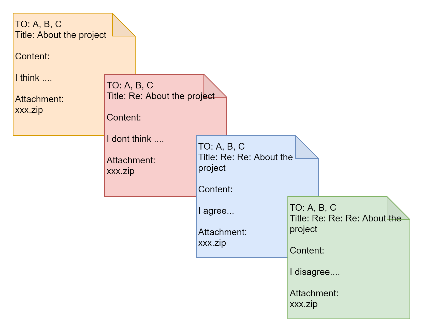 于是,他们还得想其他的办法。是不是可以借鉴传统外企的沟通方式——邮件呢?邮件有一定的格式,例如抬头、正文、附件等。发送邮件可以建立收件人列表,所有在这个列表中的人,都可以反复地在此邮件基础上回复,达到频繁沟通的目的。这个啊,就是消息队列模型。