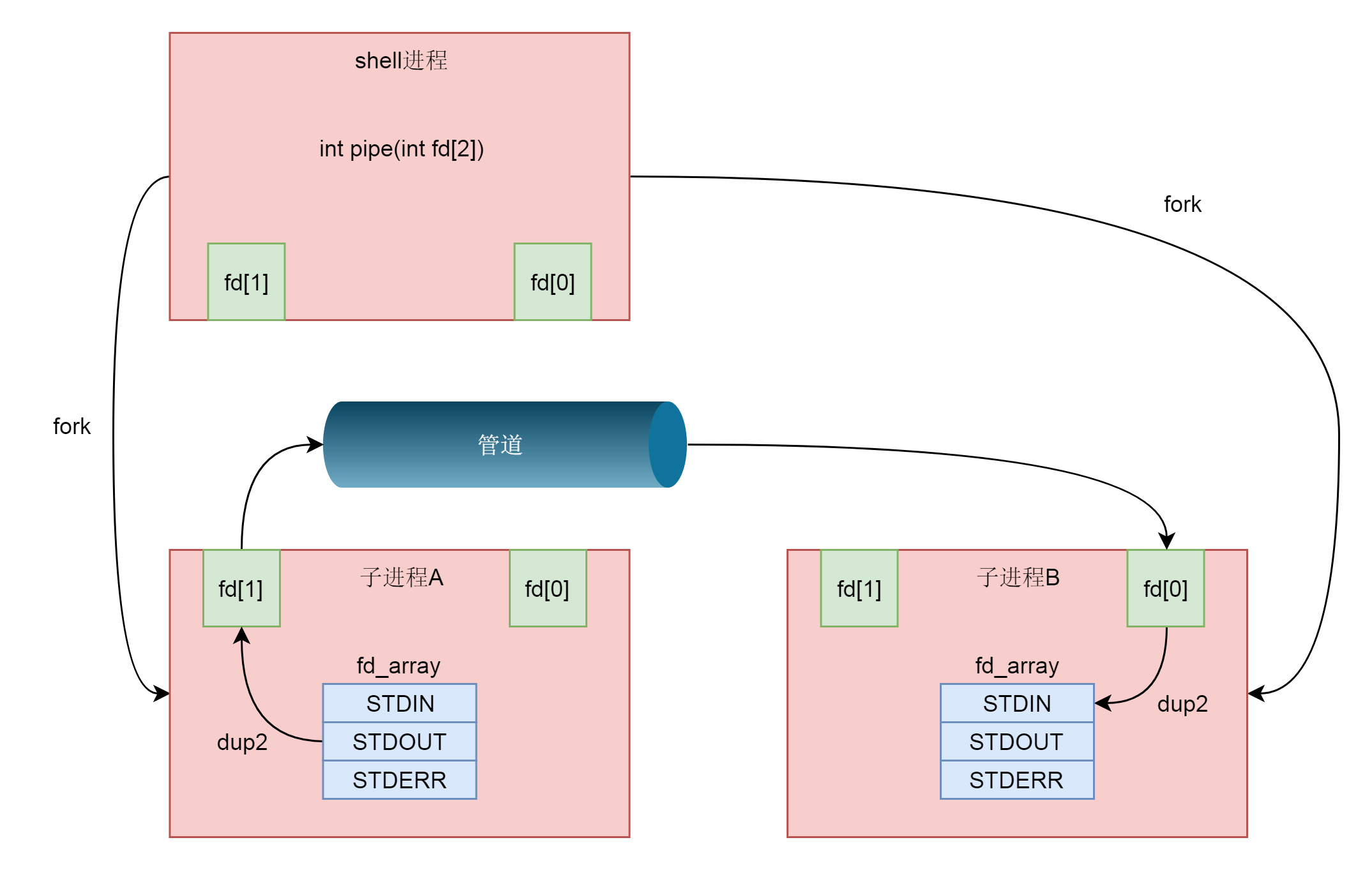 所谓的管道,就是在两个进程之间建立一条单向的通道,其实是一段缓存,它会将前一个命令的输出,作为后一个命令的输入。