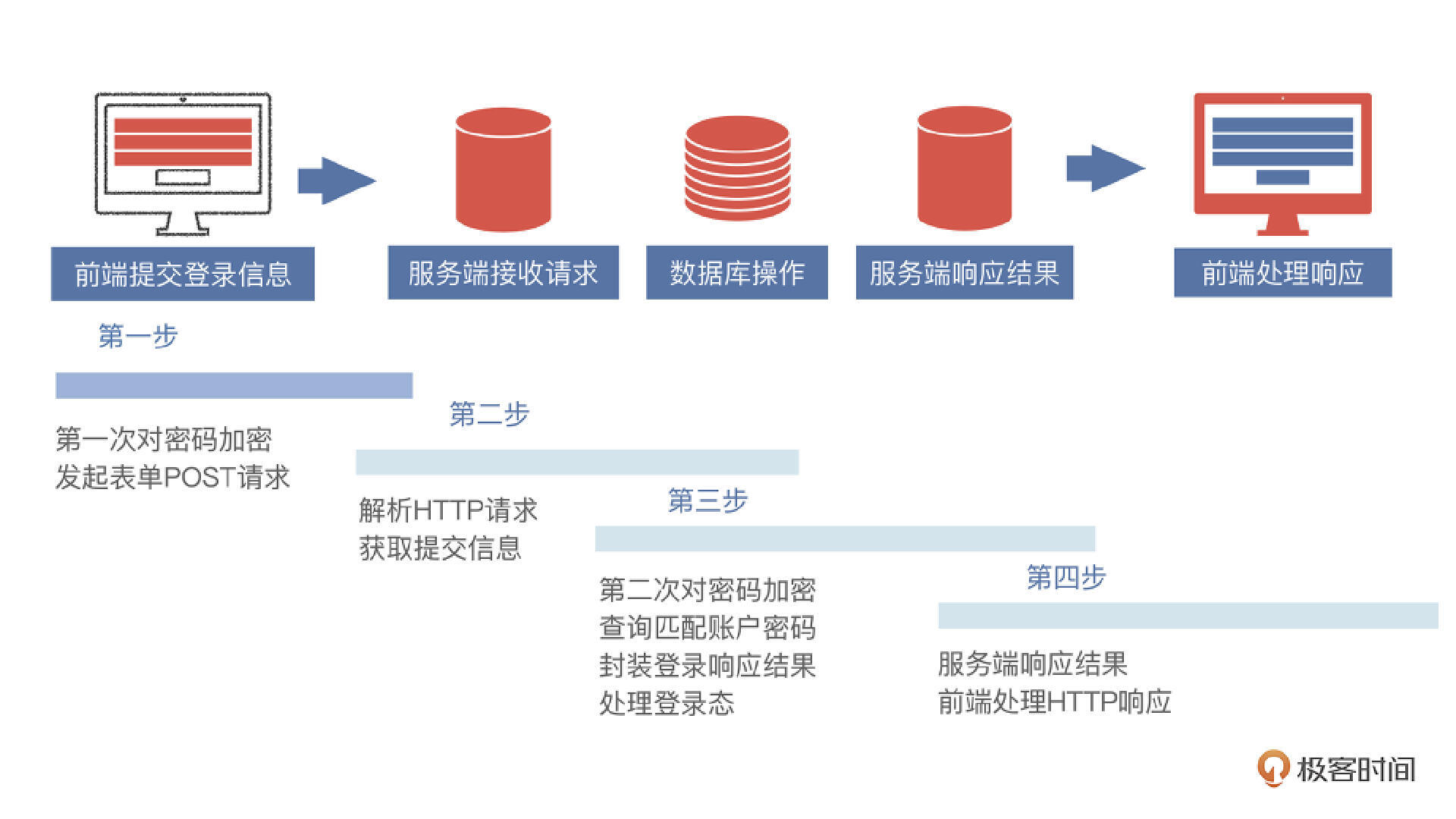 - 第二步,用户提交登录信息。这时候平台需要判断账号密码是否正确,并返回登录成功或者失败的结果。