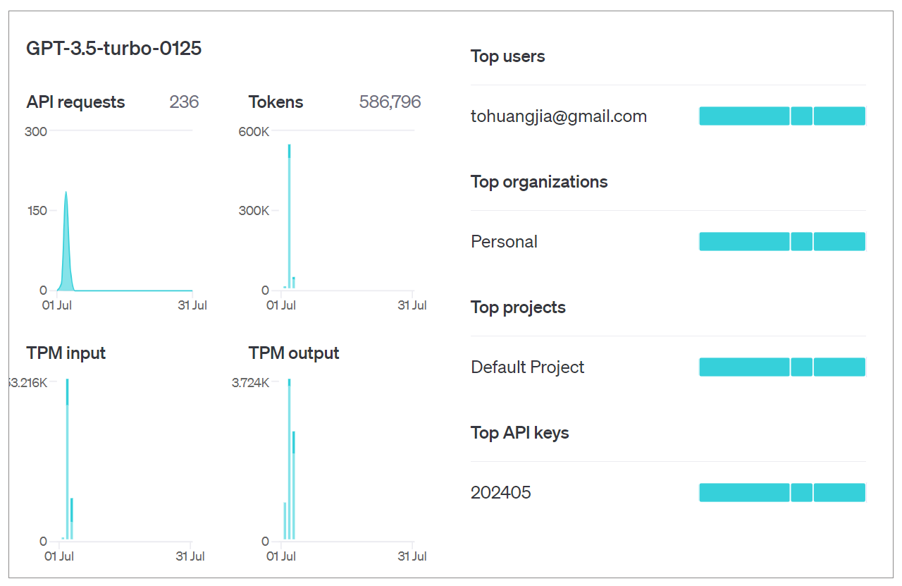 在OpenAI提供的仪表板中,也可以踪当前和过去计费周期内的Token使用情况。
