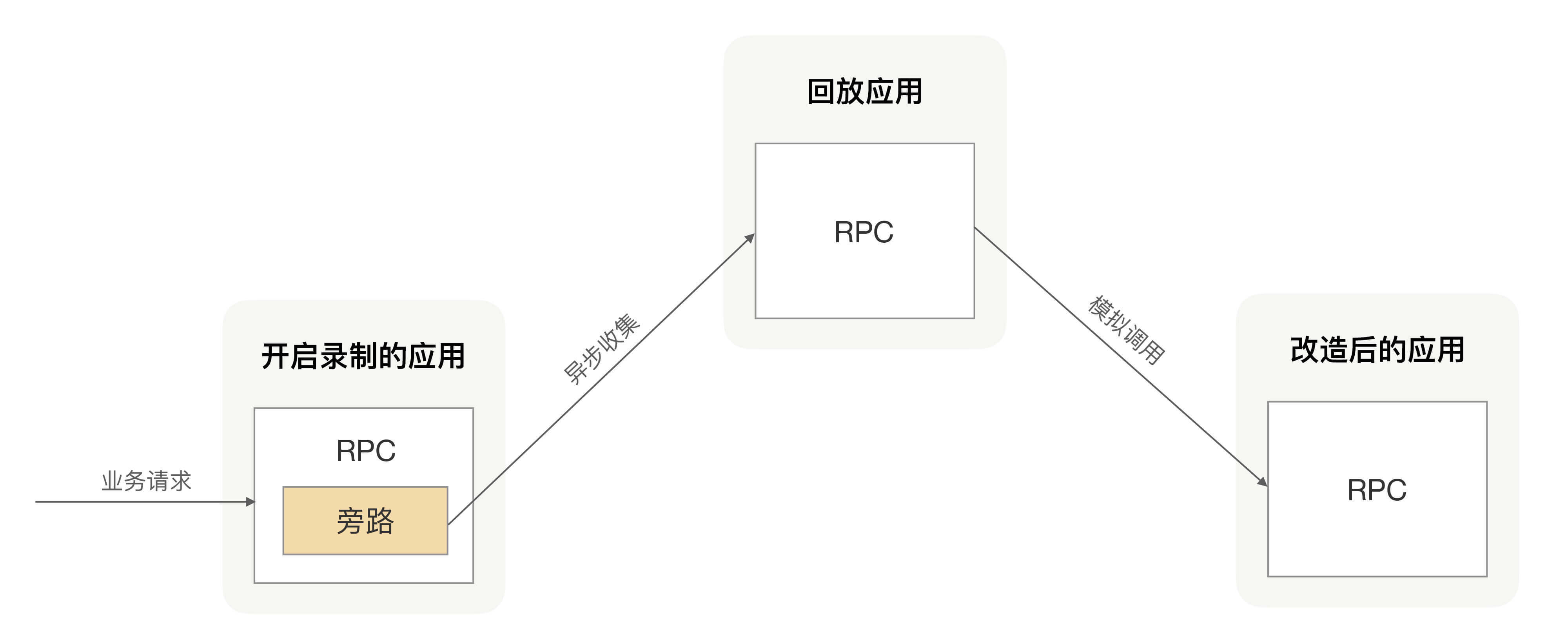 为了保障应用升级后,我们的业务行为还能保持和升级前一样,我们在大多数情况下都是依靠已有的TestCase去验证,但这种方式在一定程度上并不是完全可靠的。最可靠的方式就是引入线上Case去验证改造后的应用,把线上的真实流量在改造后的应用里面进行回放,这样不仅节省整个上线时间,还能弥补手动维护Case存在的缺陷。