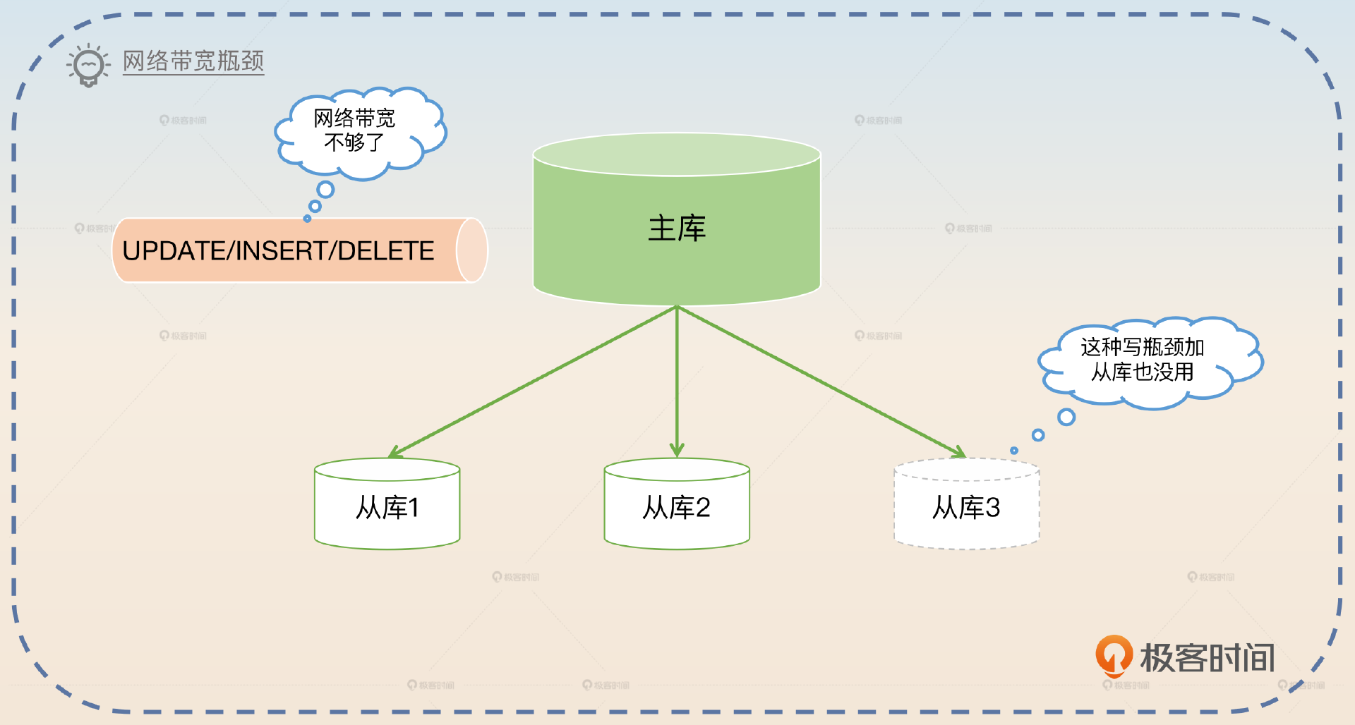 - 对于硬件瓶颈来说,读写分离、分区表基本上也解决不了,比如写操作引发的网络带宽问题。