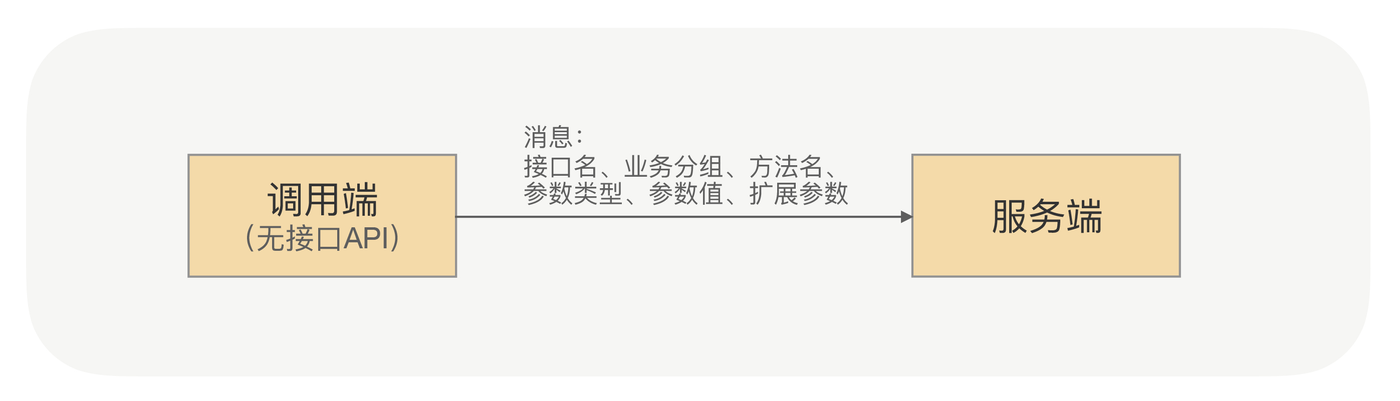 没错,只要调用端将服务端需要知道的信息,如接口名、业务分组名、方法名以及参数信息等封装成请求消息发送给服务端,服务端就能够解析并处理这条请求消息,这样问题就解决了。过程如下图所示: