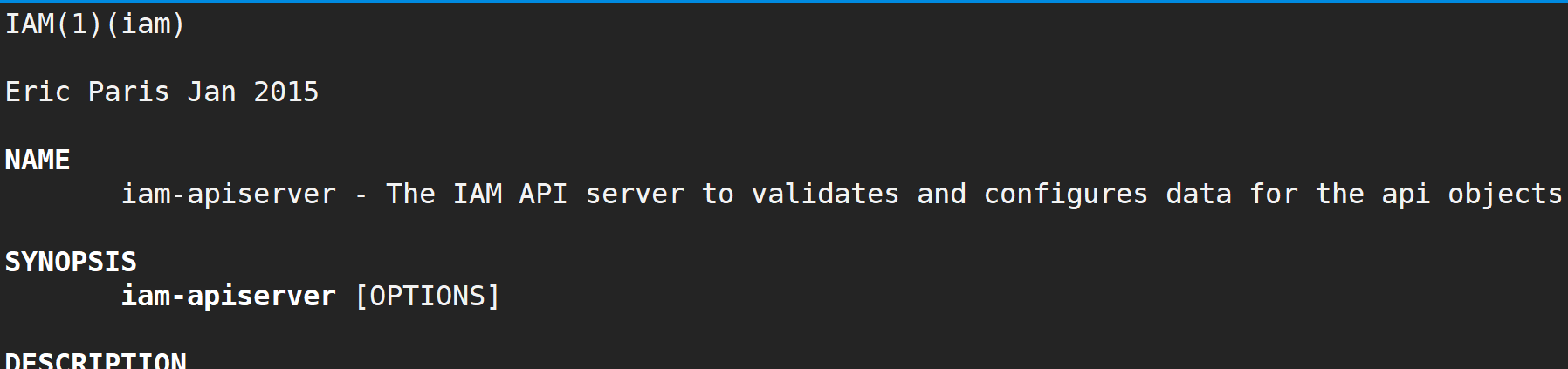 执行 man iam-apiserver 命令后,会弹出 man 文档界面,如下图所示: