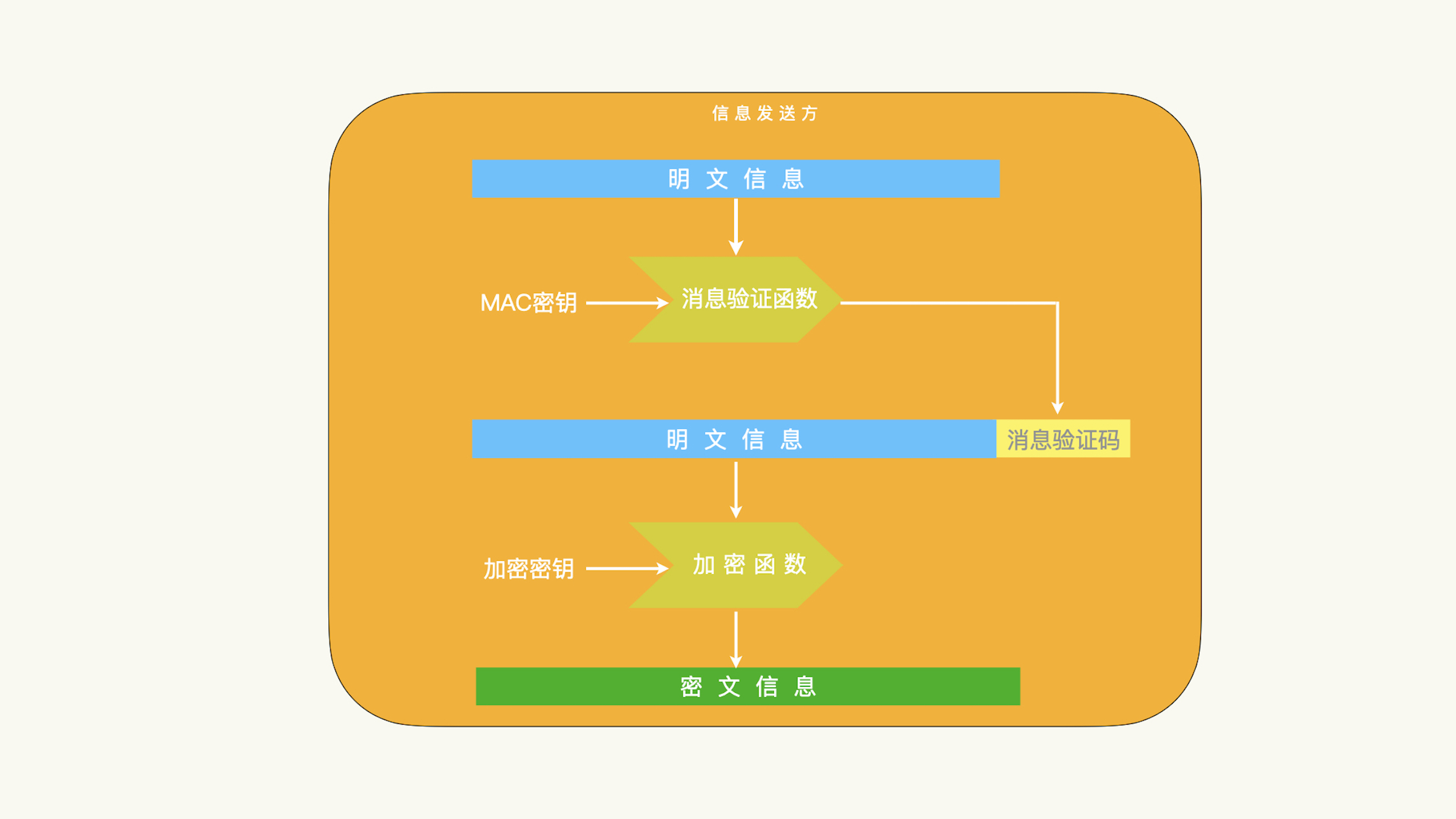 想要保持信息的私密性,我们可以在信息传输之前,把明文数据加密成密文数据,然后传输密文数据。如果我们还想要保持信息的完整性,我们就要使用消息验证码。