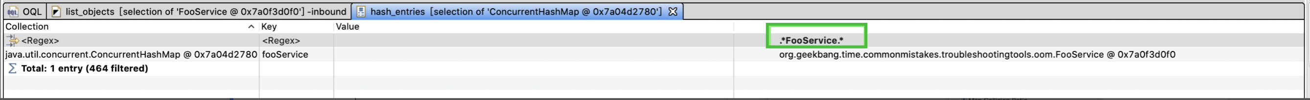 这样就列出了所有的Bean,可以在Value上的Regex进一步过滤。输入FooService后可以看到,类型为FooService的Bean只有一个,其名字是fooService: