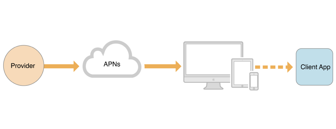 - 首先,Provider(也就是IM服务器)把消息通过长连接发送到APNs上;