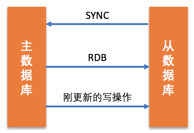- 主服务器收到命令后会生成RDB(快照)文件,并记录从现在起新执行的写操作;
