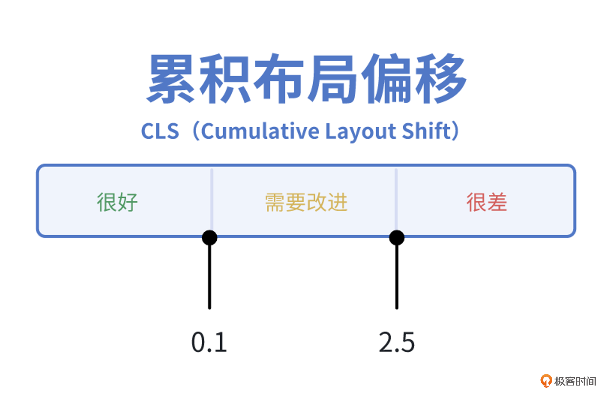 谷歌为CLS指标设定了一套衡量标准。分数低于0.1或没有这个值,就认为没有用户体验问题。如果分数小于0.25,那么页面就有改进的空间。当分数大于0.25时,就认为存在布局偏移问题,需要重点关注。