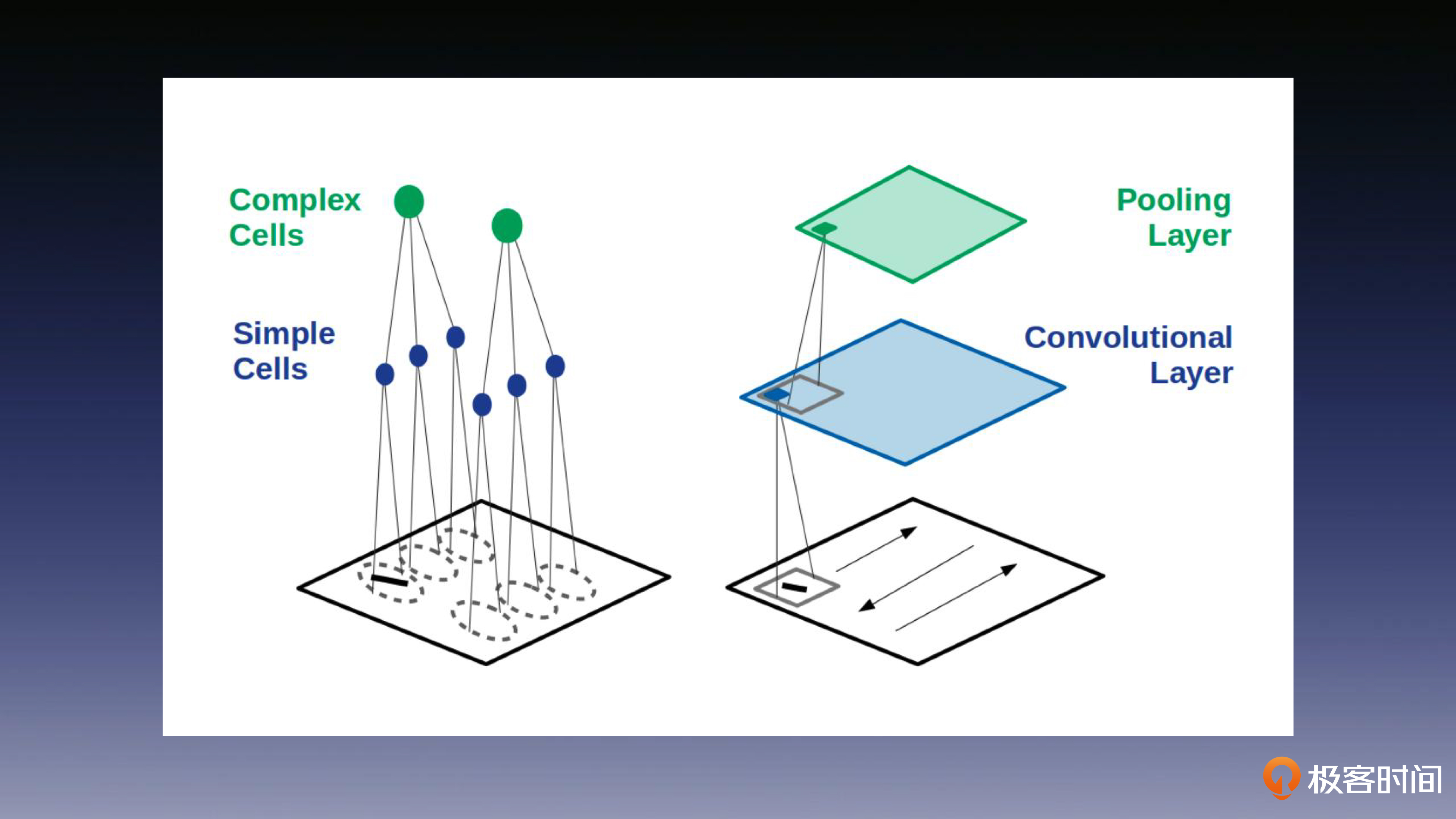 我在后面准备了一张CNN的示意图,方便你直观对比两类细胞和 CNN 网络之间的关系。