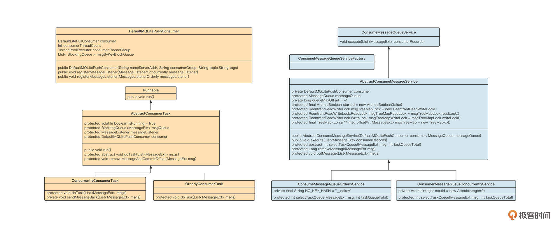 类图与时序图已经强调了顺序消费模型的几个关键点,接下来我们结合代码看看具体的实现技巧。