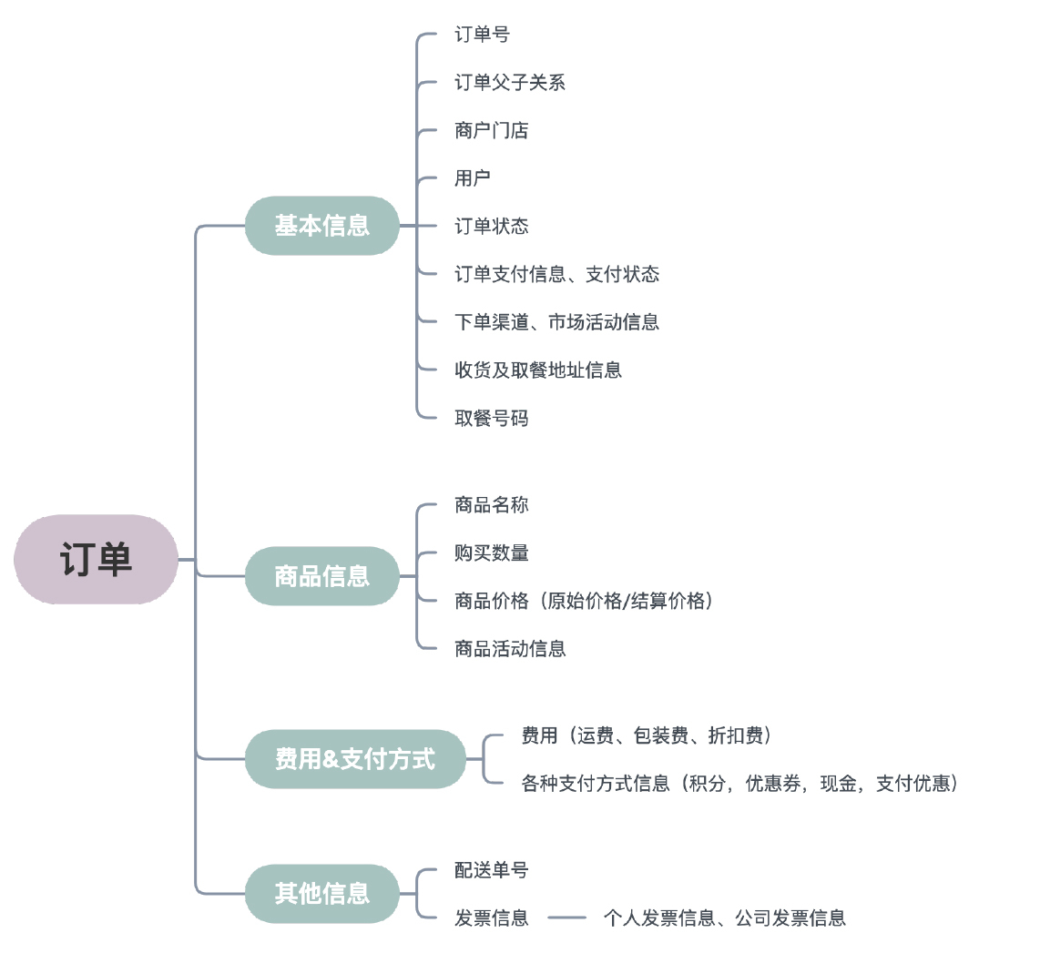 对于数据模型来说,订单要存储哪些信息,已经比较明确了,具体你可以看下这个图。
