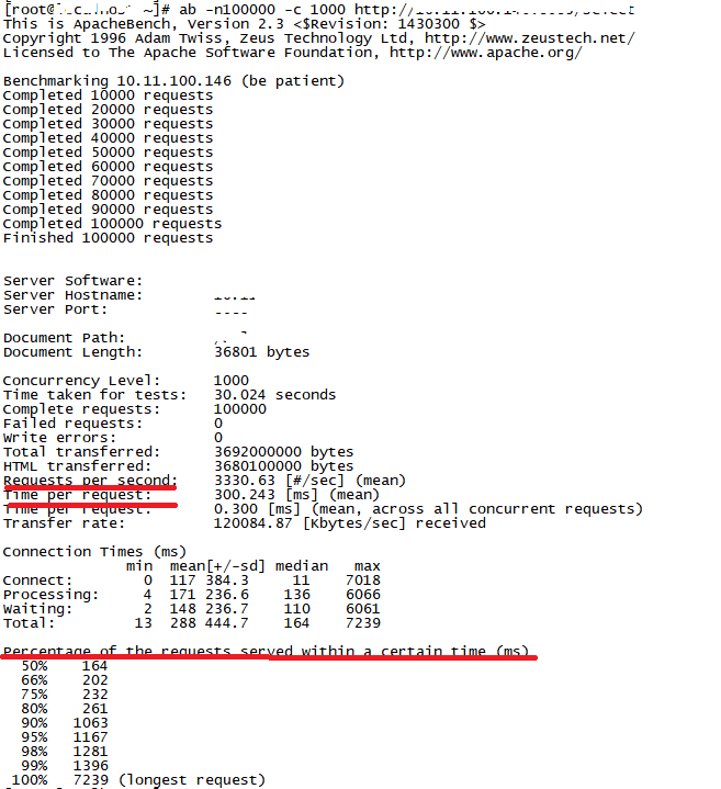 这个结果来自我对接口做的微基准性能测试。我习惯使用ab工具(通过yum -y install httpd-tools可以快速安装)在另一台机器上对http请求接口进行测试。