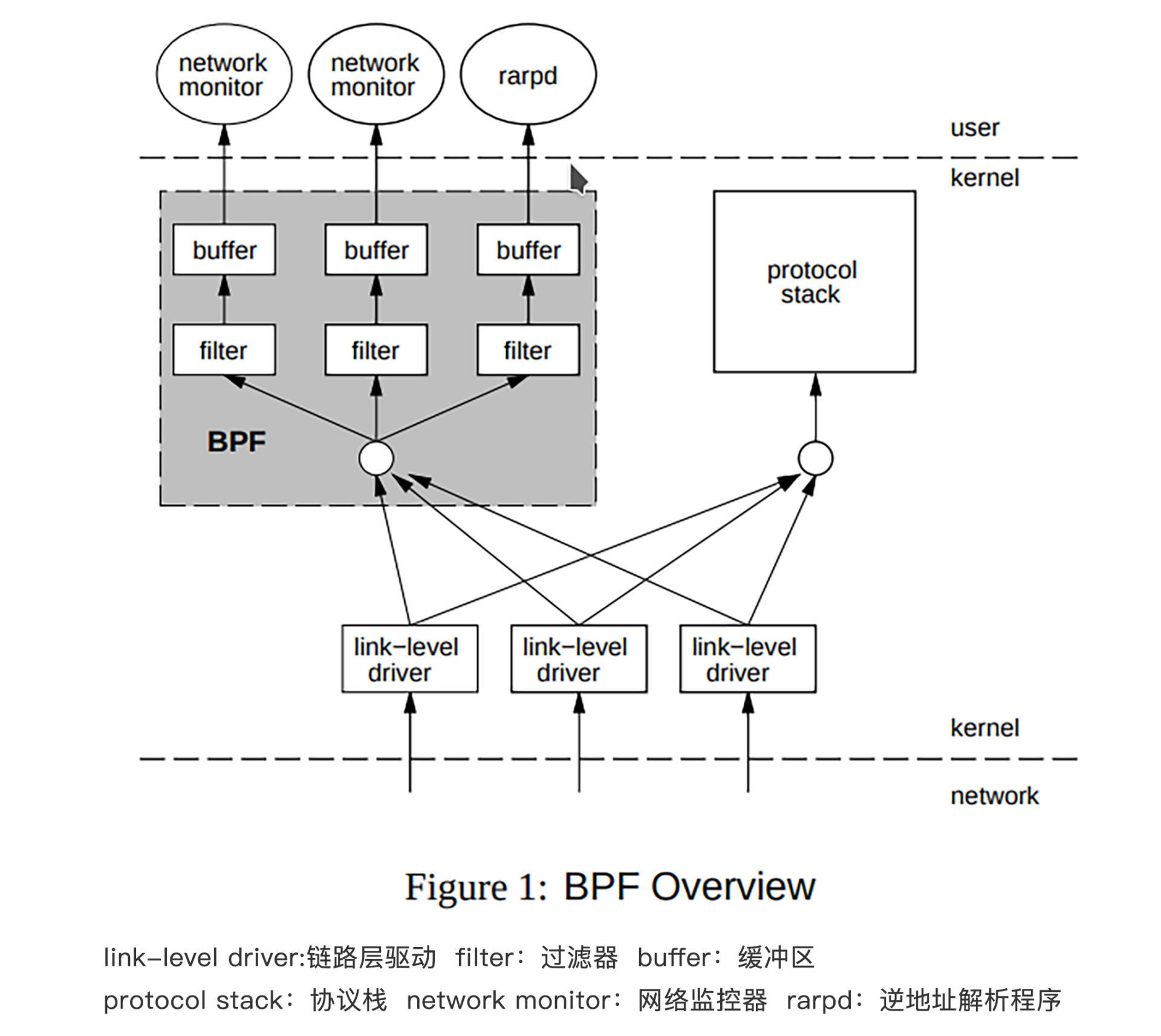 早期的BPF的架构是这样子的: