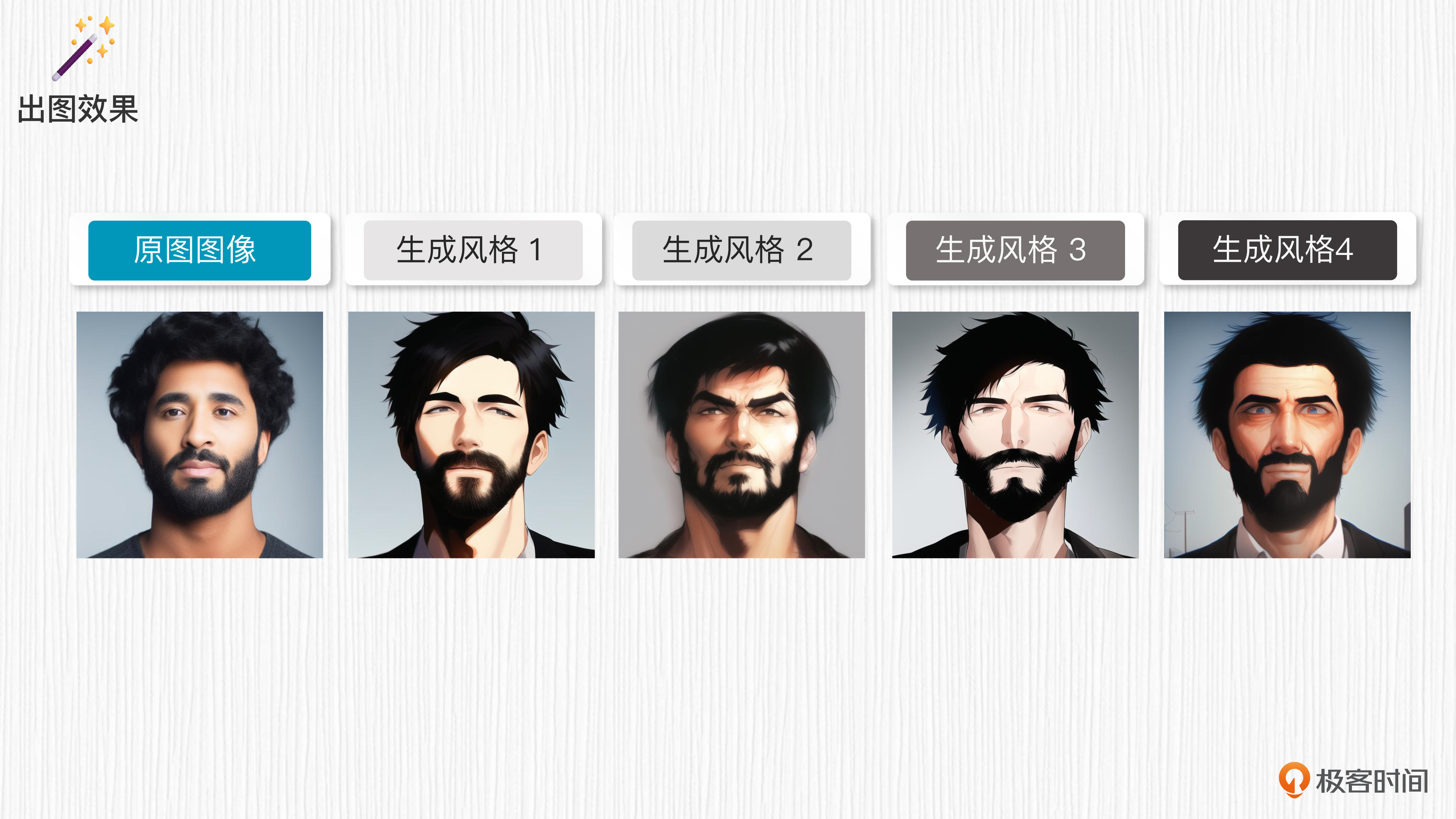 以一张男士的头像为例,通过使用不同的prompt语句,就能将其转变成多种不同的风格,如艺术风格、卡通风格、油画风格等。每一步都会逐渐减少噪声的影响,使得图像细节逐渐清晰,并呈现出与prompt语句相匹配的风格特征。
