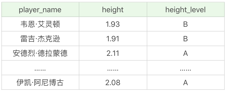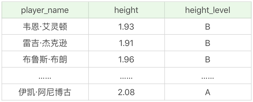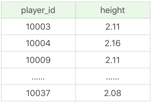 我们以NBA球员数据表为例。我们想要查询比NBA球员平均身高高的球员都有哪些,显示他们的球员ID和身高。假设我们给这个视图起个名字player_above_avg_height,那么创建视图可以写成: