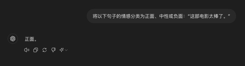 注意看,虽然ChatGPT没有经过情感分类训练,但它依然完成得很好,直接输出了句子的情感分类。