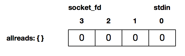 程序的12行通过FD_ZERO初始化了一个描述符集合,这个描述符读集合是空的: