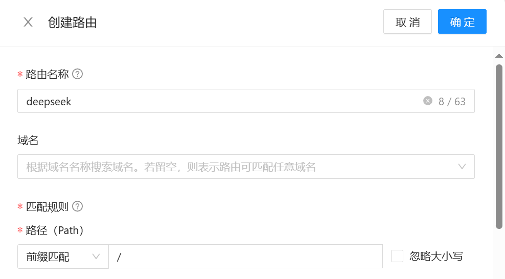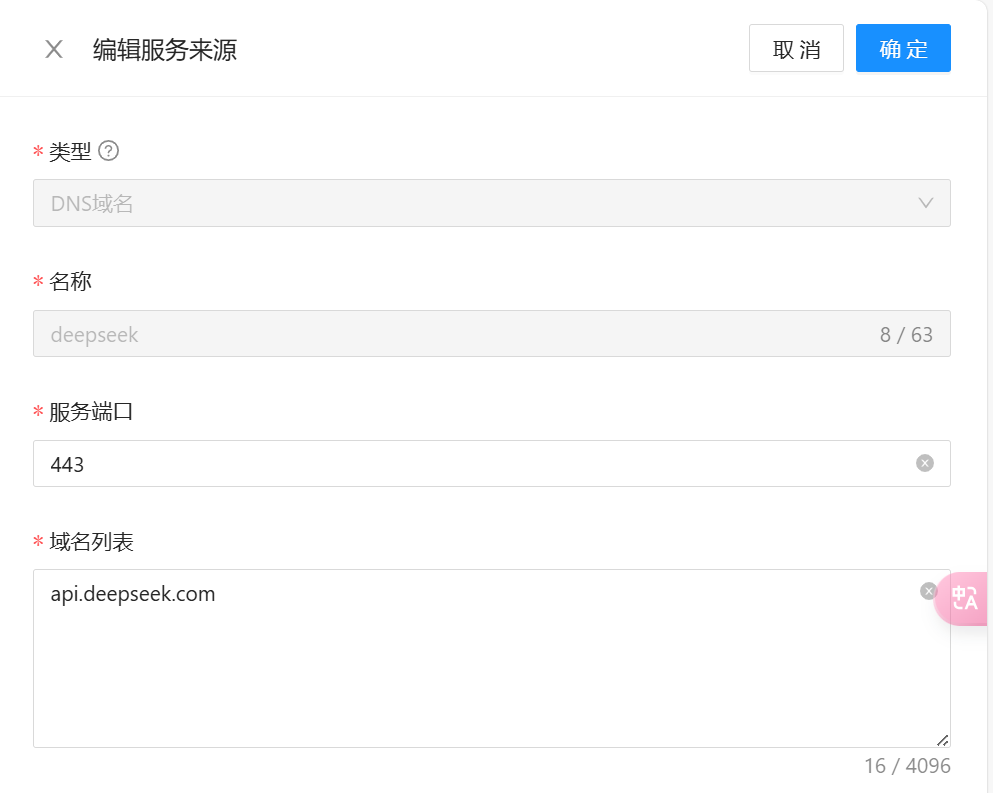 首先,需要打开 Higress 控制台,在服务来源页面添加上 DeepSeek 服务。