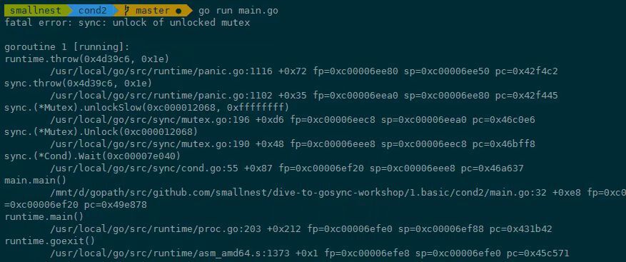我们先看Cond最常见的使用错误,也就是调用Wait的时候没有加锁。