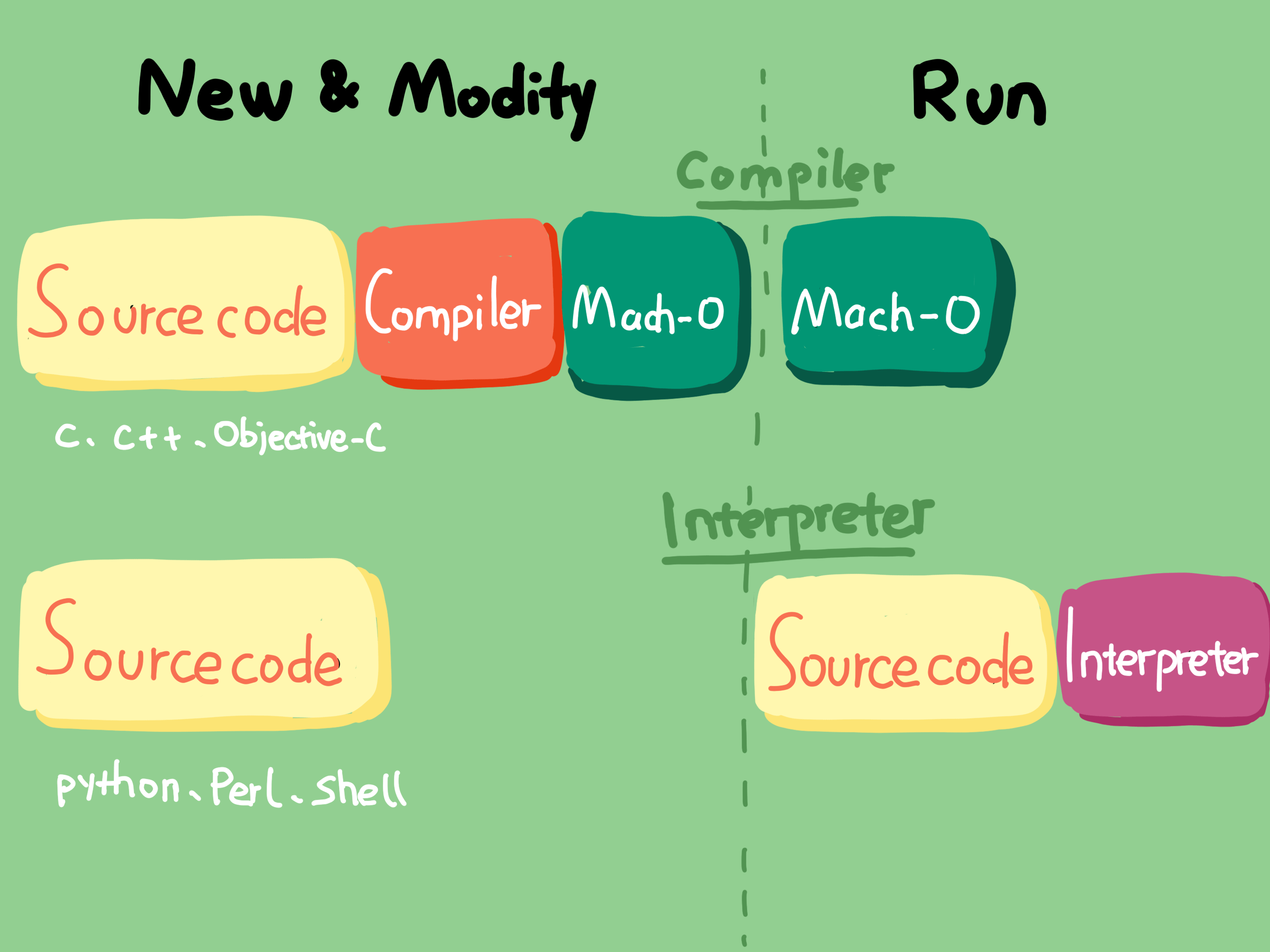 这时你一定会纳闷了,既然编译器效率这么高,那为什么还有人用解释器呢?所谓事有利弊,解释器可以在运行时去执行代码,说明它具有动态性,程序运行后能够随时通过增加和更新代码来改变程序的逻辑。