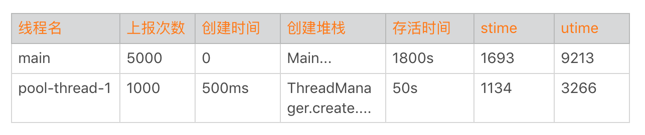 - 线程时间。监控线程的用户时间utime、系统时间stime和优先级。主要是看哪些线程utime+stime时间比较多,占用了过多的CPU。正如上一期“每课一练”所提到的,可能有一些线程因为生命周期很短导致很难发现,这里我们需要结合线程创建监控。
