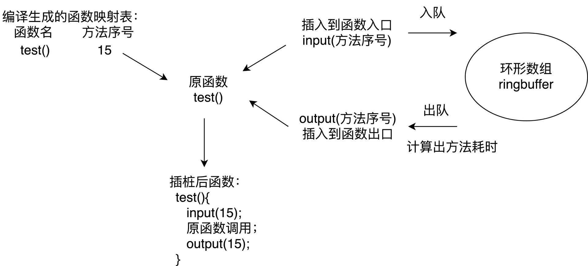 - 过滤简单的函数。过滤一些类似直接return、i++这样的简单函数,并且支持黑名单配置。对一些调用非常频繁的函数,需要添加到黑名单中来降低整个方案对性能的损耗。