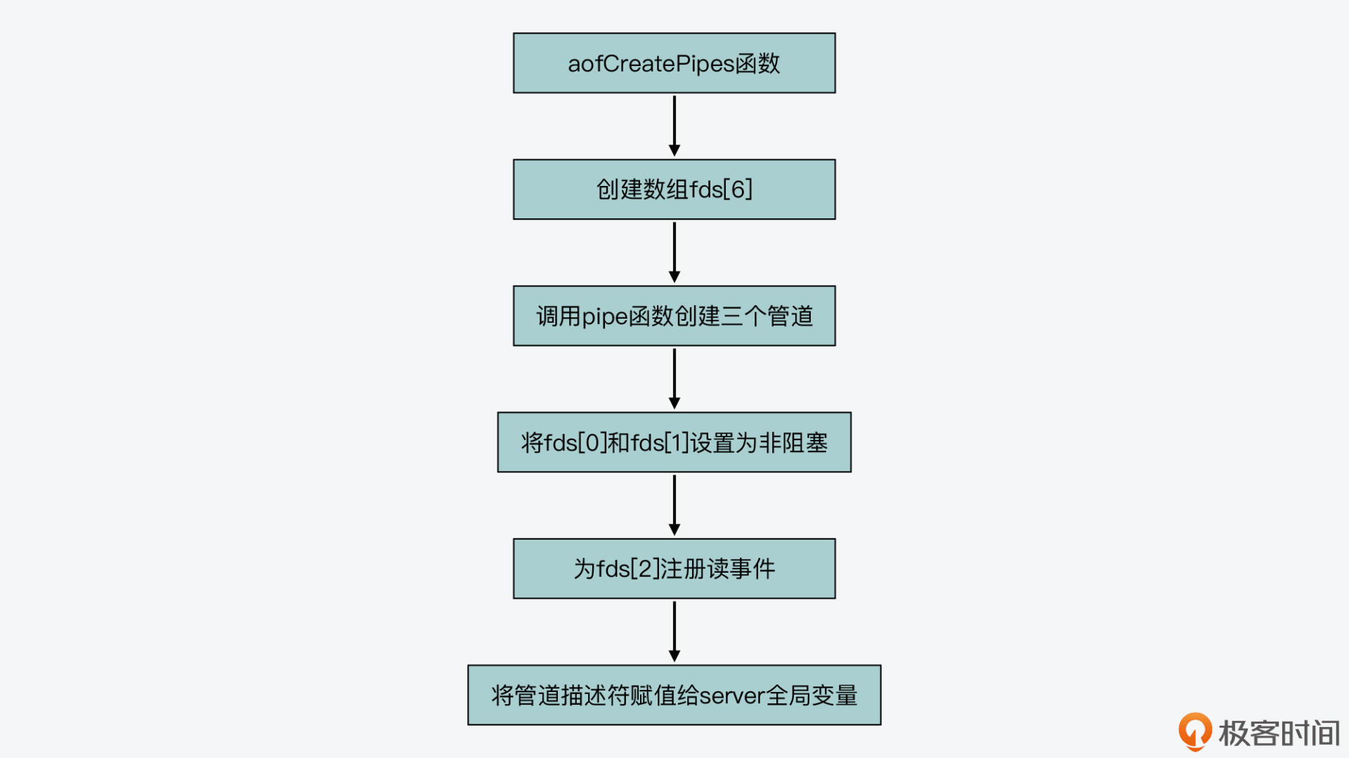 下图也展示了aofCreatePipes函数的基本执行流程,你可以再回顾下。