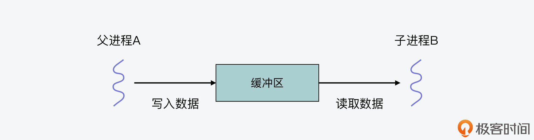 具体来说,管道机制在操作系统内核中创建了一块缓冲区,父进程A可以打开管道,并往这块缓冲区中写入数据。同时,子进程B也可以打开管道,从这块缓冲区中读取数据。这里,你需要注意的是,进程每次往管道中写入数据时,只能追加写到缓冲区中当前数据所在的尾部,而进程每次从管道中读取数据时,只能从缓冲区的头部读取数据。