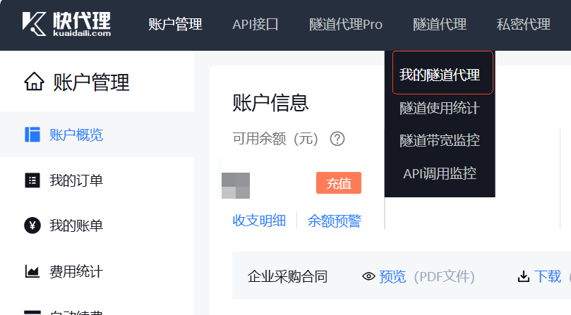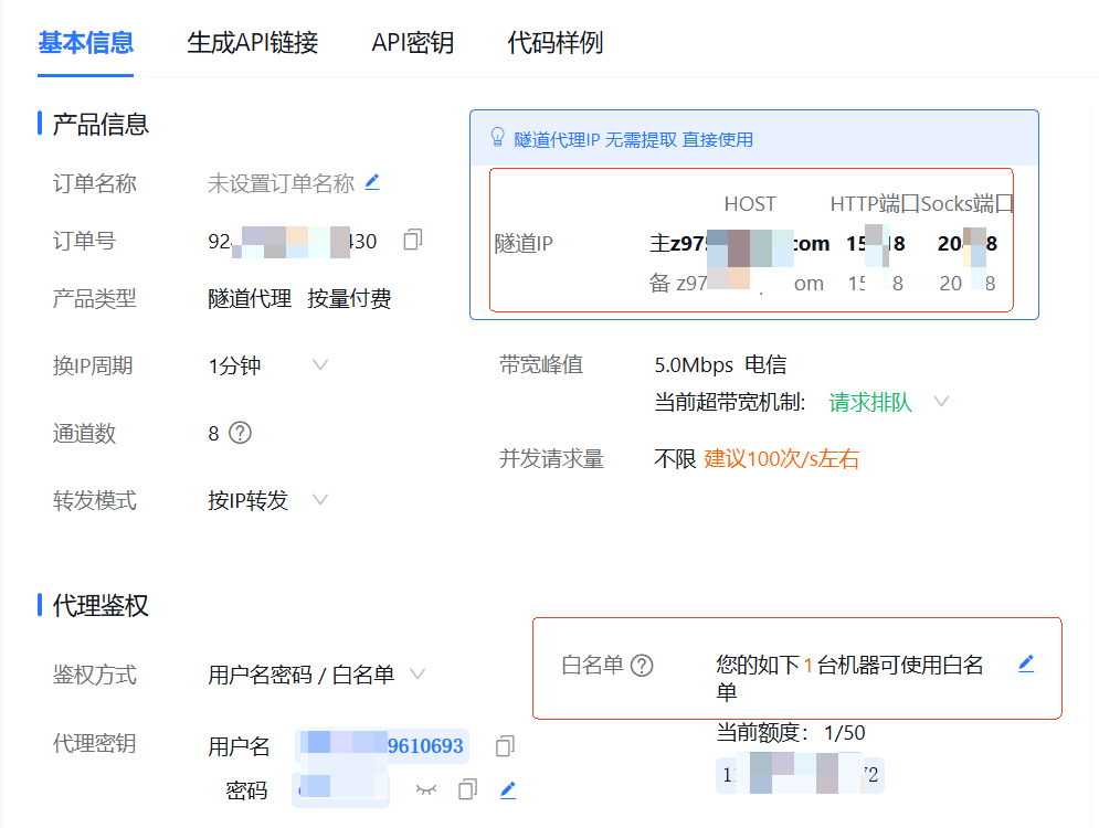 此时,选择隧道代理–>我的隧道代理。会看到下图所示的基本信息页面。