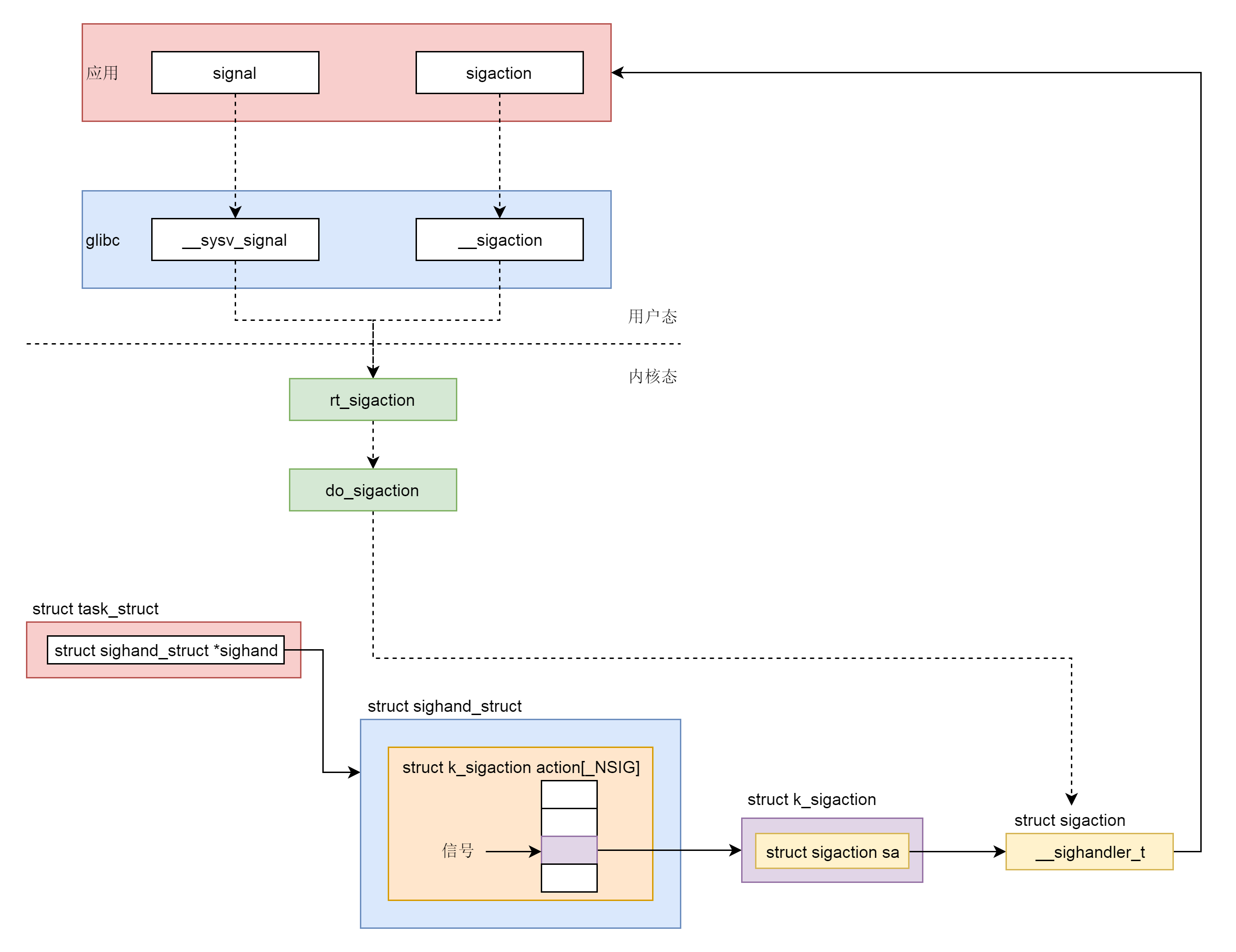 这一节讲了如何通过API注册一个信号处理函数,整个过程如下图所示。