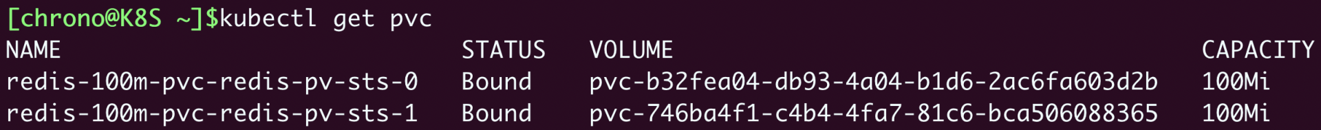 你可以使用命令 kubectl get pvc 来查看StatefulSet关联的存储卷状态:
