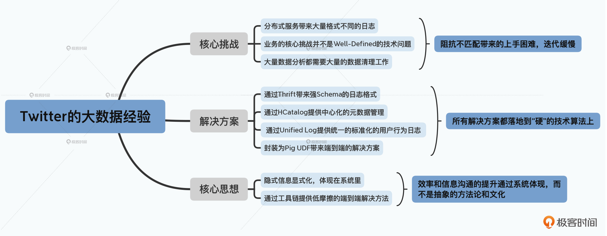 Twitter其实发表了很多论文,分享了自己在大数据处理和数据挖掘层面的工程实践。如果你在搭建大数据体系的过程中,遇到很多难以决策的困难,大可以从里面找找有什么可以借鉴的思路和解决方案。我把我自己读过觉得有价值的论文的链接放在了这里,你可以有空的时候去读一下。