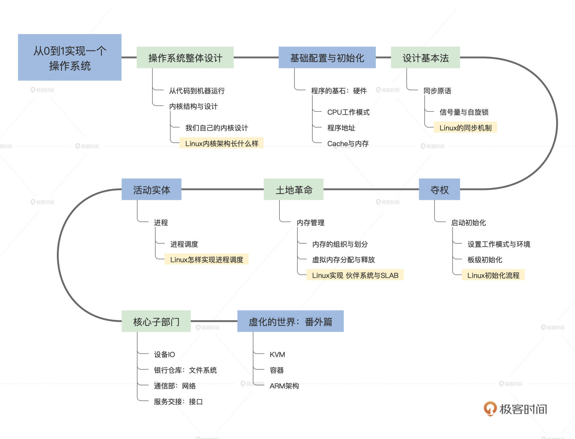 我最初设计整个专栏的时候,就想兼顾宏观思路和细节实现,既带你领略操作系统的壮观风景,也能作为指导手册让你跟着我动手实现。但是写起来才发现,为了完成这两点,我实际花的时间跟精力,远远超过了预估。