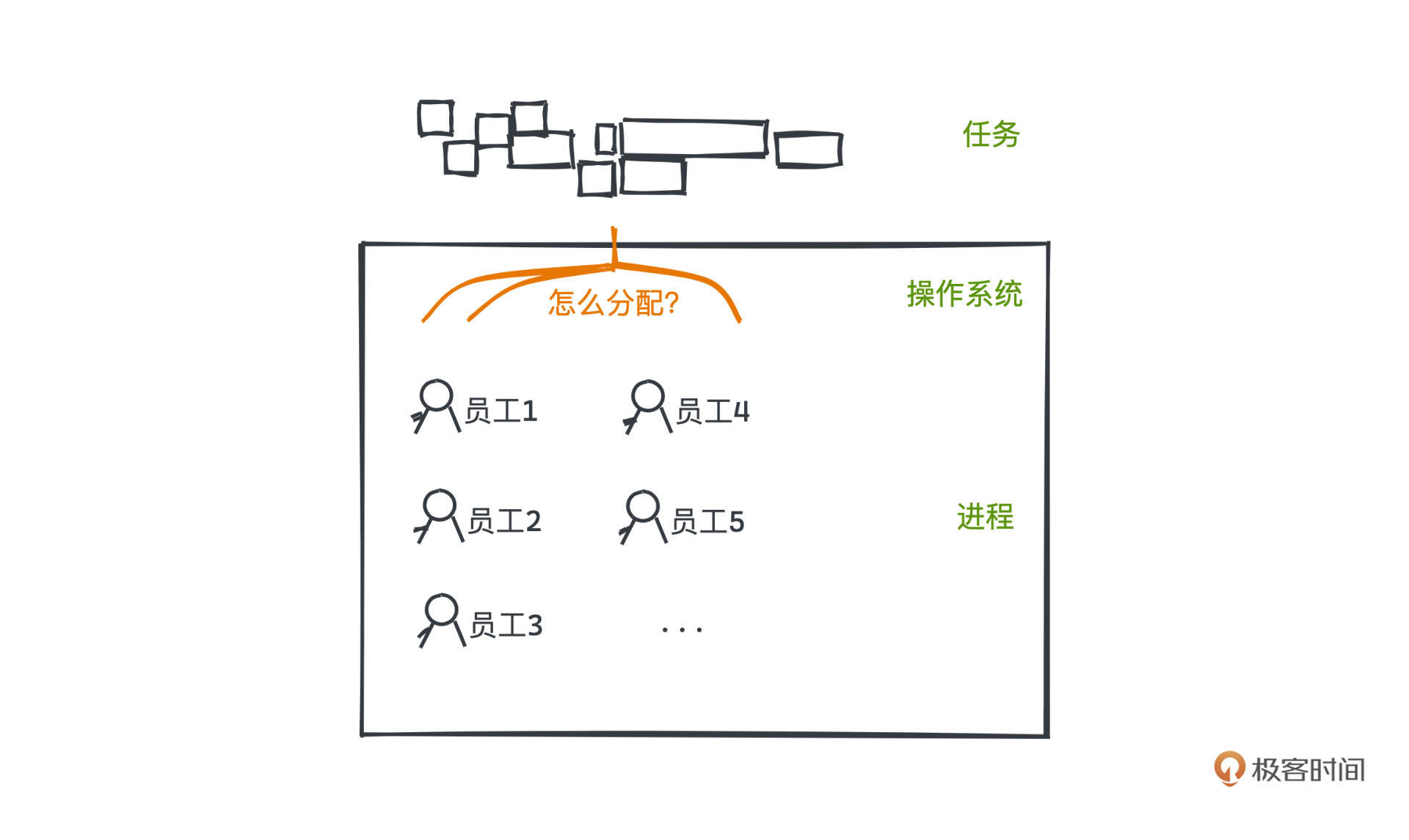 如果把操作系统比作一家公司的CEO,进程就像这家公司的员工,每个员工当然需要被分配有自己独立的办公设备,而许多任务,就像是客户的需求。为了让这些员工可以有条不紊地完成这些需求,当然也就需要一定的调度算法。