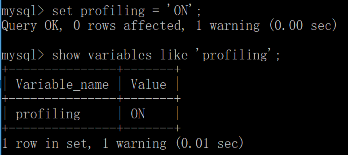 SHOW PROFILE相比EXPLAIN能看到更进一步的执行解析,包括SQL都做了什么、所花费的时间等。默认情况下,profiling是关闭的,我们可以在会话级别开启这个功能。
