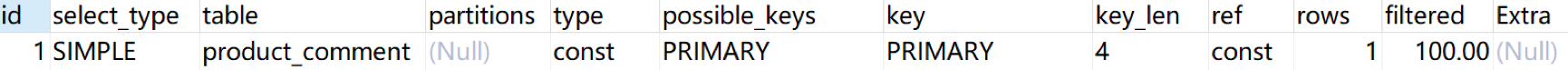 1 | EXPLAIN SELECT comment_id, comment_text, user_id FROM product_comment WHERE comment_id = 500000 |