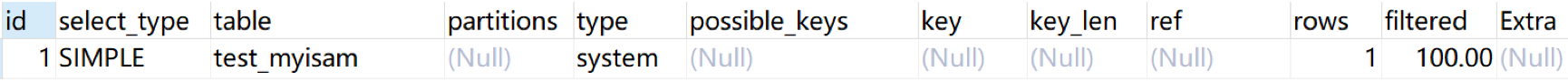 1 | EXPLAIN SELECT * FROM test_myisam |