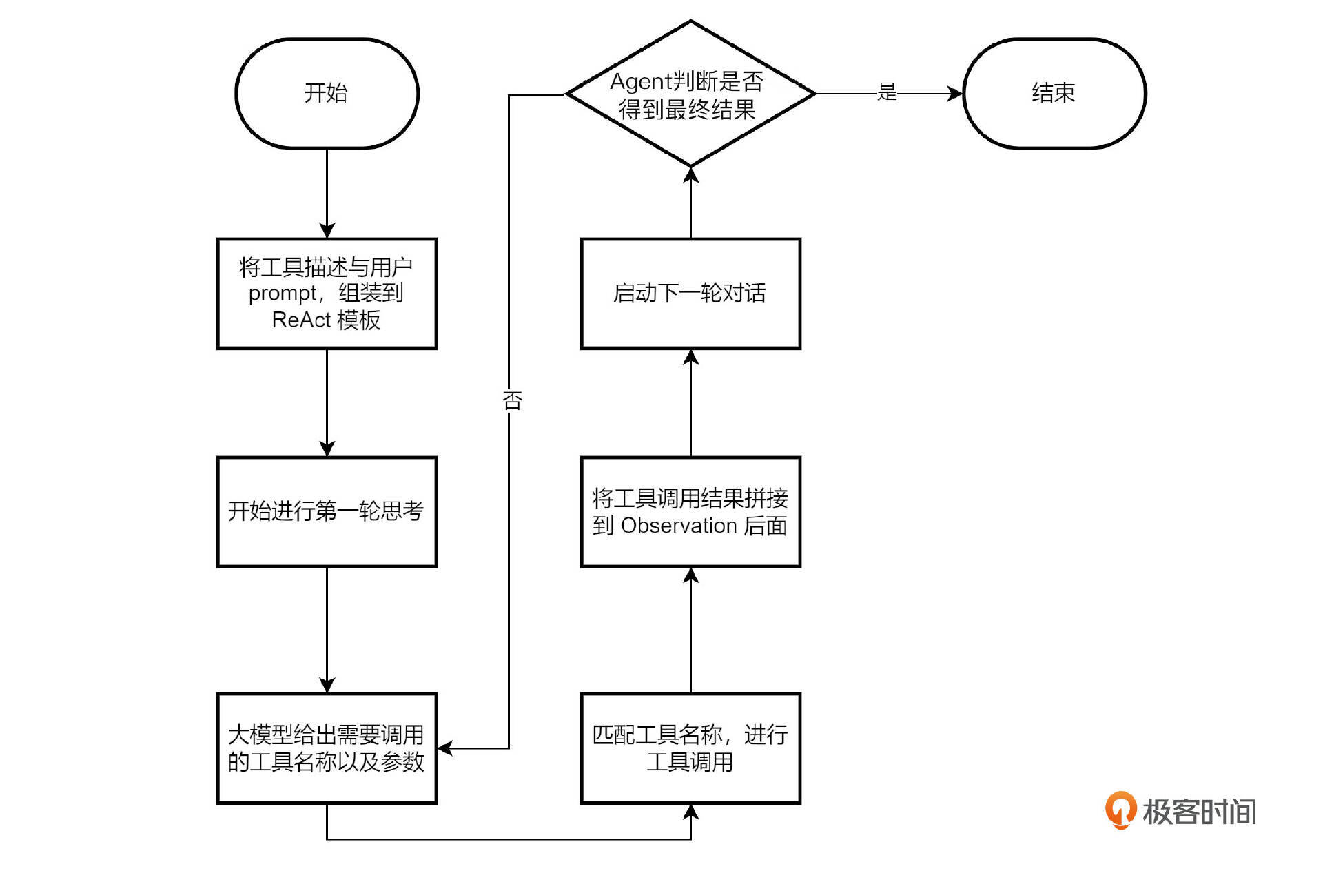 Agent 部分很简单,我们在第一章里已经讲过。本项目可以把第一章实战部分的代码直接拿过来,仅仅把 ReAct 模板略作修改即可。