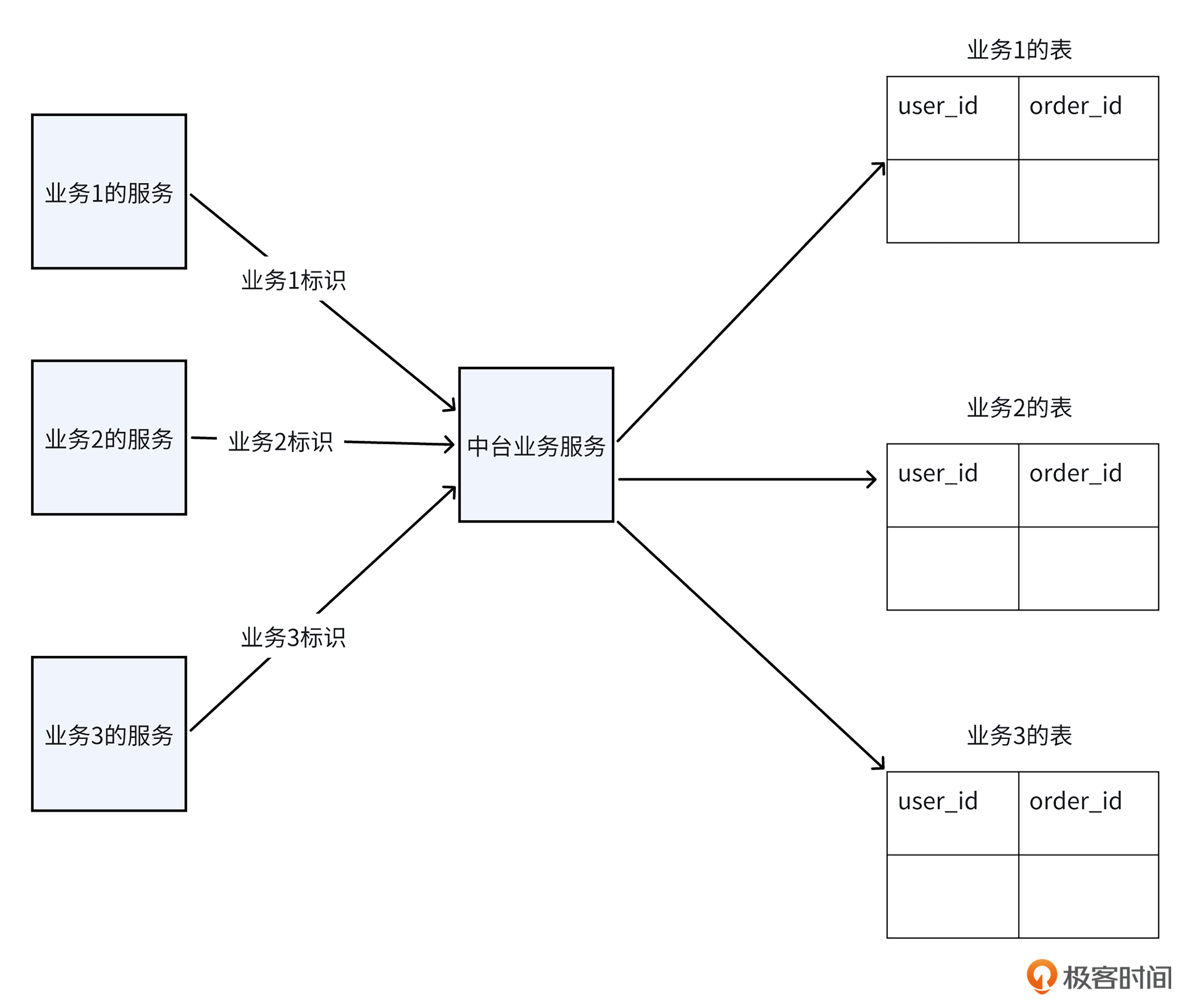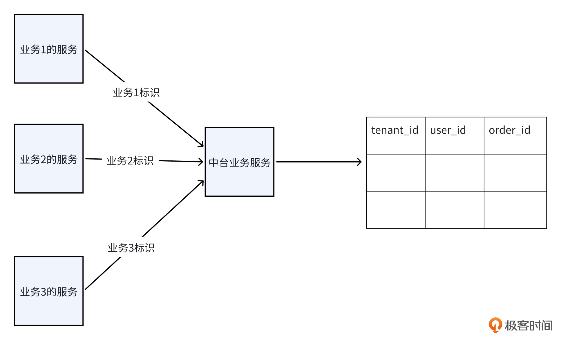 在数据隔离策略的应用上,中台类型的服务尤为典型。这种类型的服务,同一个接口,往往需要支持多个不同的业务。为了保障不同业务数据的独立和完整,防止它们相互干扰,我们必须在存储层面采取隔离措施。下面是几种常见的数据隔离实现方式。