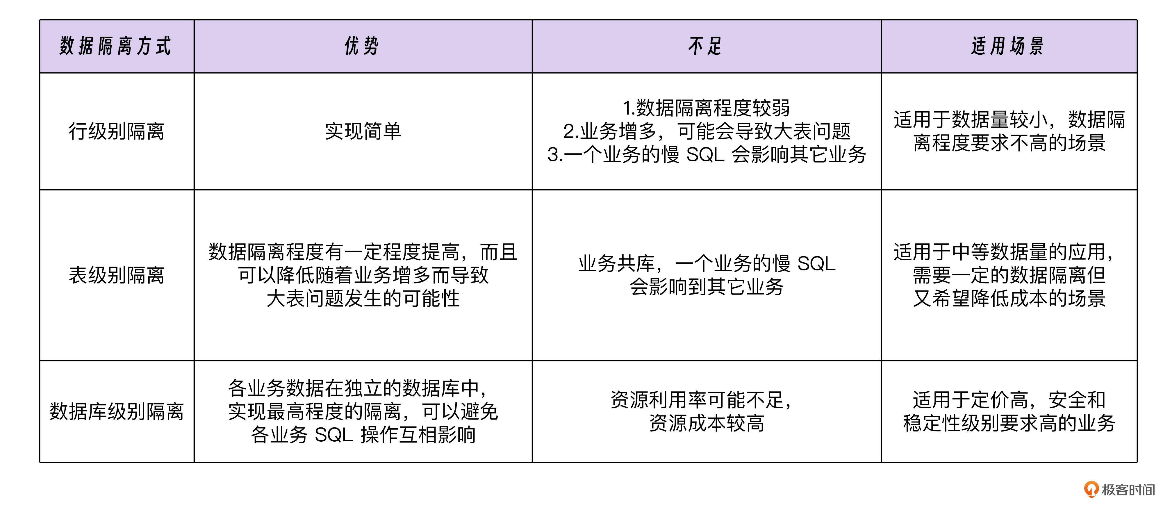 首先,我们了解了多种数据隔离的方法。对于数据隔离,最为常见的有三种实现方式,它们分别是行级别隔离、表级别隔离以及数据库级别隔离。
