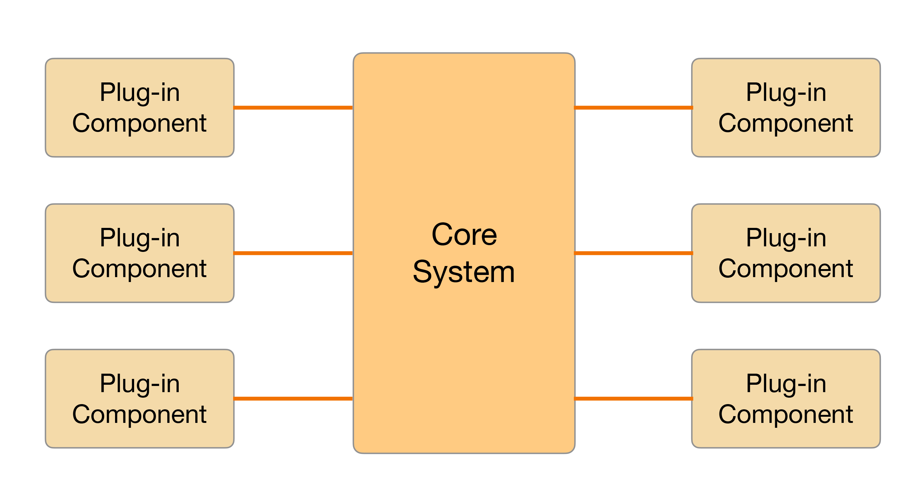 上面这张图中核心系统Core System功能比较稳定,不会因为业务功能扩展而不断修改,插件模块可以根据业务功能的需要不断地扩展。微内核的架构本质就是将变化部分封装在插件里面,从而达到快速灵活扩展的目的,而又不影响整体系统的稳定。