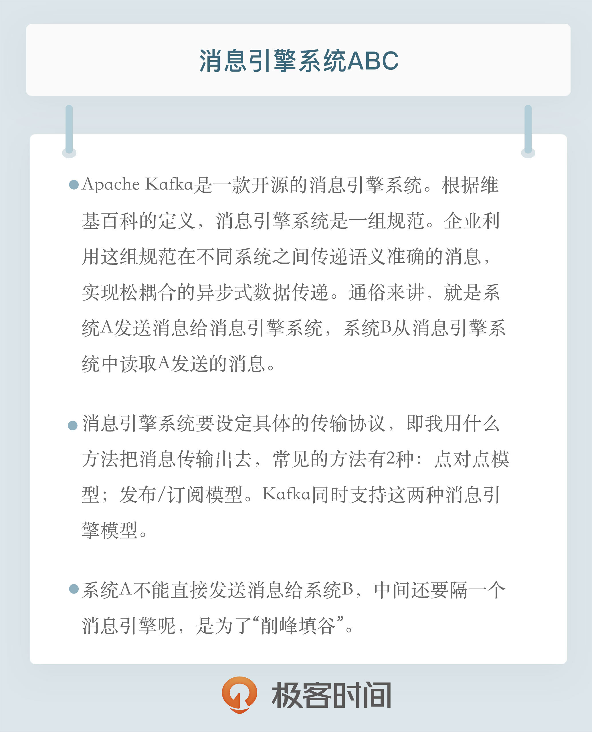 还是拉回来继续聊消息引擎系统,那这类系统是做什么用的呢?我先来个官方严肃版本的答案。
