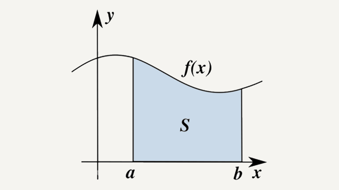 我们可以把S无限细分成无数个小矩形,因为矩形的宽足够短,所以它顶端的边近似是一个直线。这样,把容易计算的矩形面积相加,就得到不容易直接计算的不规则图形面积。