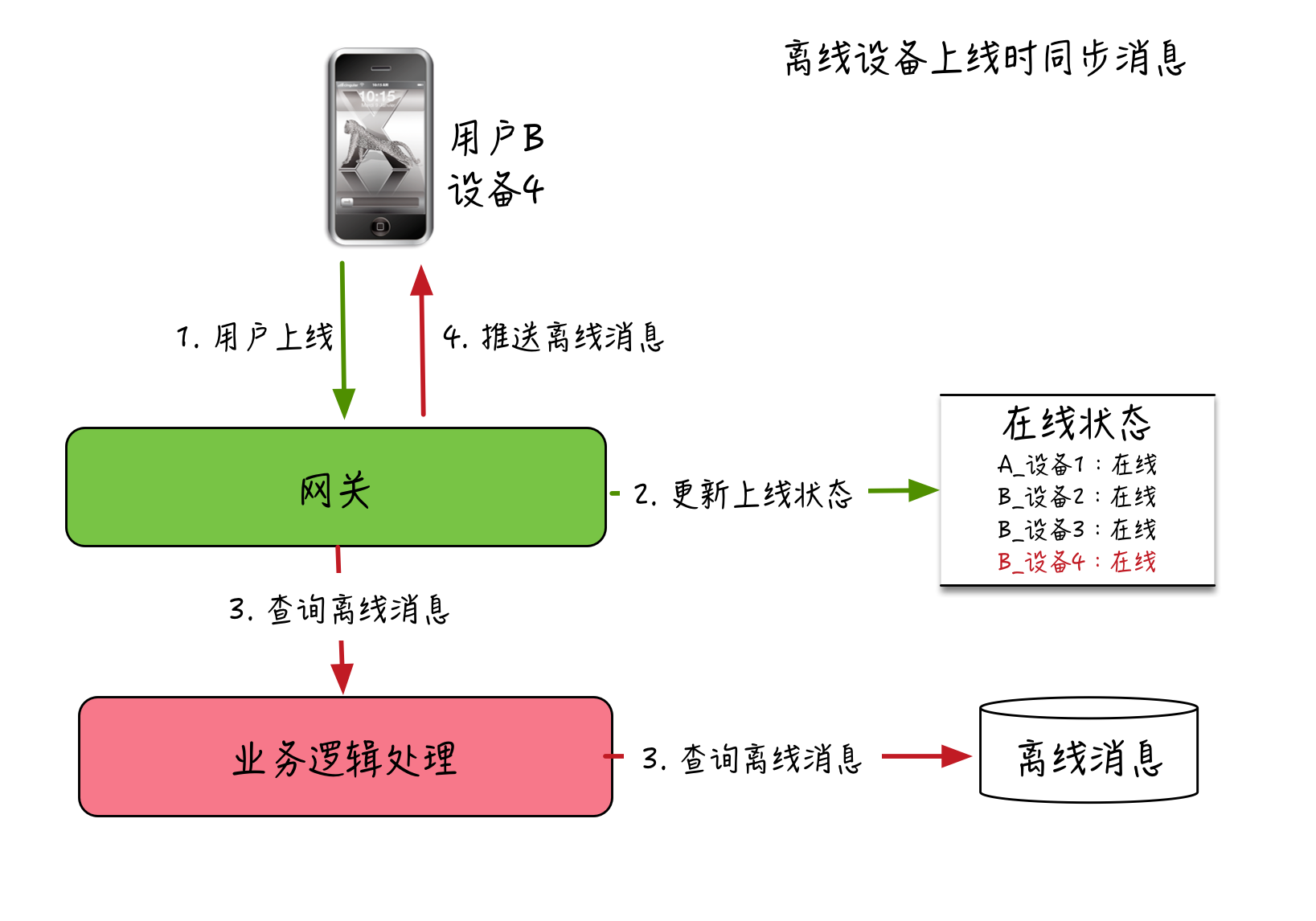 为了便于理解,我简单把这个离线同步消息的过程画了一下。