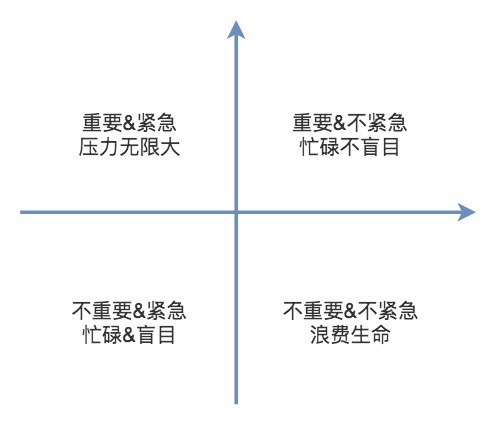 不重要&紧急,会让我们忙碌且盲目。不重要&不紧急,让我们浪费生命时间。