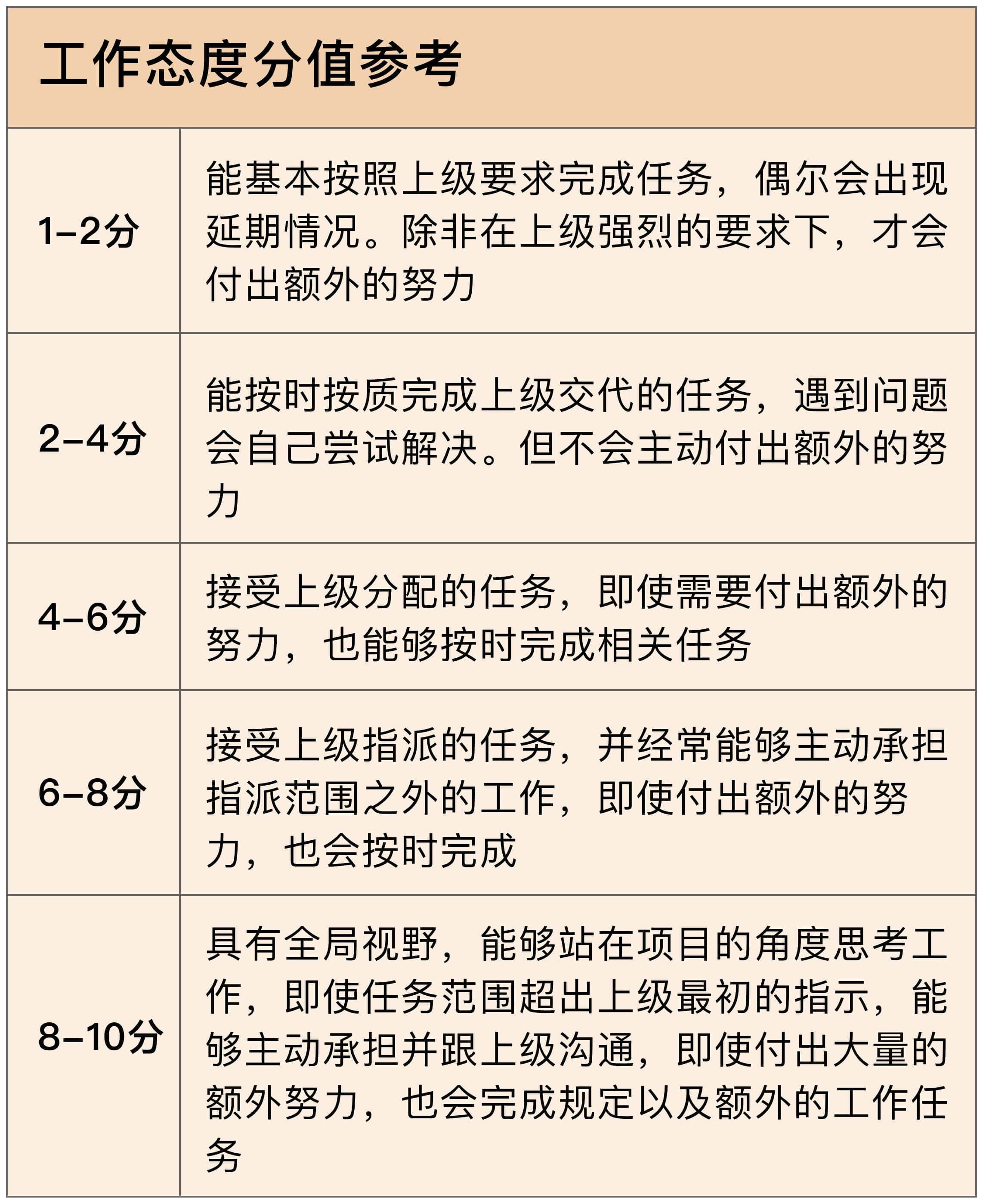 工作态度,就是根据上级管理者的期望合理完成任务,包括能够站在项目视角看待工作任务,主动思考,主动推进,超出既定范围也会积极承担。