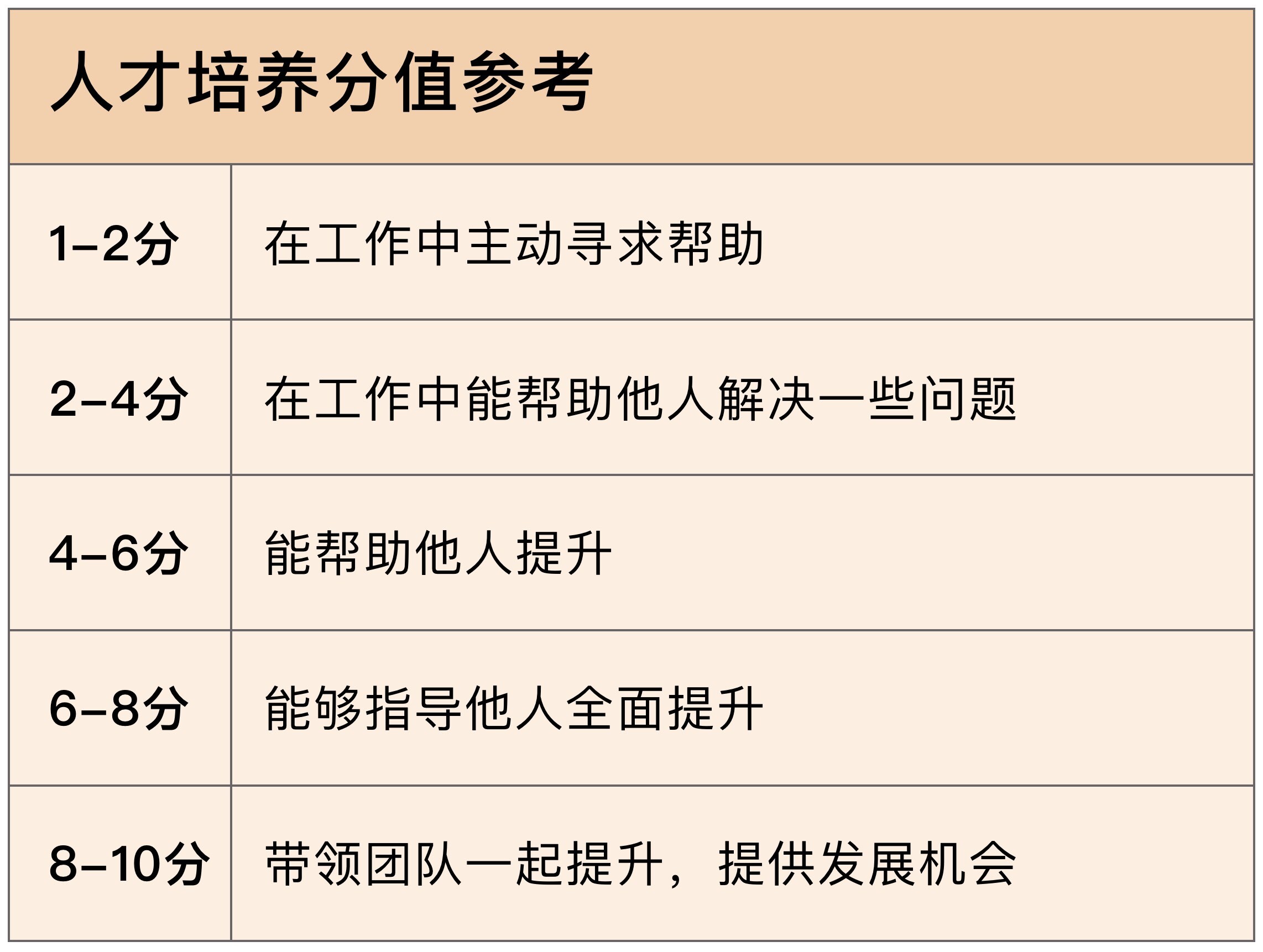 我们来看最后一块组织建设能力,也被分为三个项:知识沉淀、人才培养、工作态度。