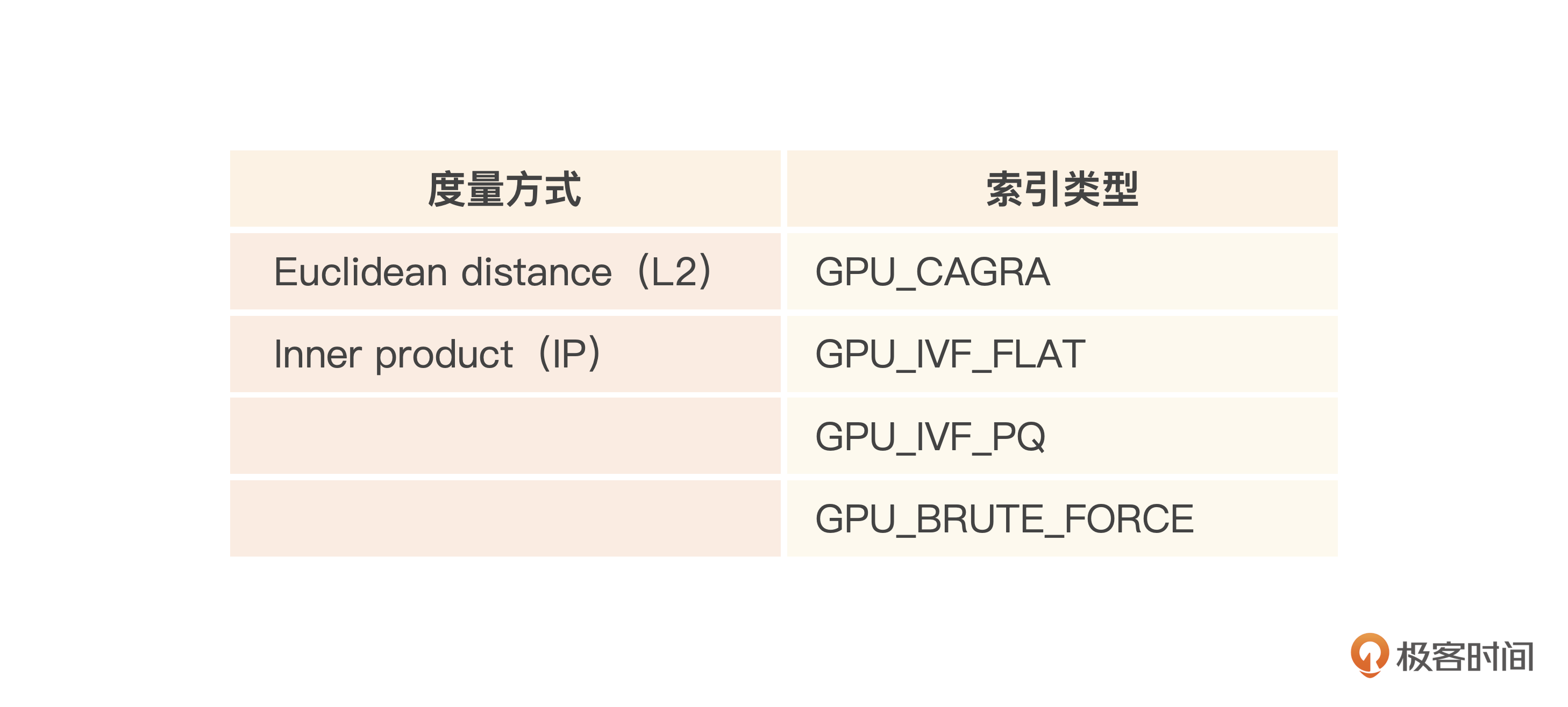 同样你可以参考下表GPU索引支持的索引类型与度量方式**。**